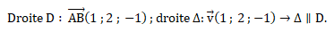 On note D la droite passant par les points A(3 ; −3 ; 0) et B(4 ; −1 ; −1).