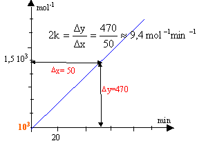 d'où k = 5 mol-1 min -1. le graphe étant une droite l'hypothèse est vérifiée.