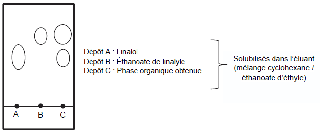 On identifie le linalol et l'éthanoate de linalyse par comparaison des rapports frontaux.