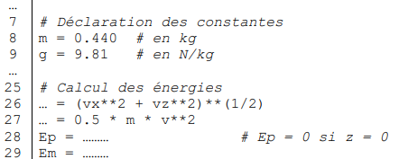 7. Identifier les grandeurs calculées aux lignes 26 et 27.