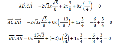Dans l'hypothèse ou H est l'orthocentre du triangle ABC, les produits scalaires suivants doivent être nuls.