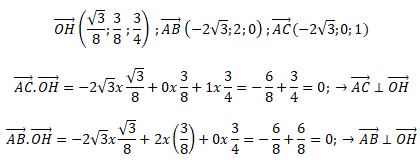 La droite (OH) étant orthogonale à deux vecteurs non colinéaires du plan ABC, cette droite est orthogonale au plan ABC.