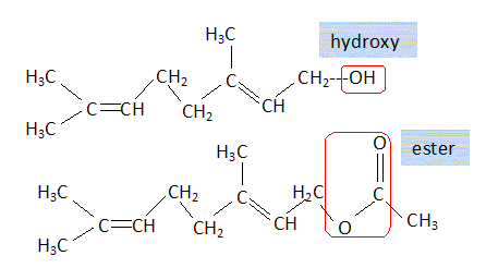 formule semi-développée du géraniol et de l'éthanoate de géranyle.
