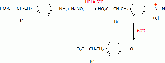 K réagit avec le nitrite de sodium dans l'acide chlorhydrique à 5°C :