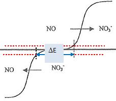 Fe3+/Fe2+ : système rapide ; NO3- / NO : système lent.