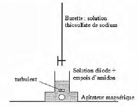 étape 4 : on réalise le dosage du diiode formé par le thiosulfate de sodium de concentration c4 = 0,20 mol/L.