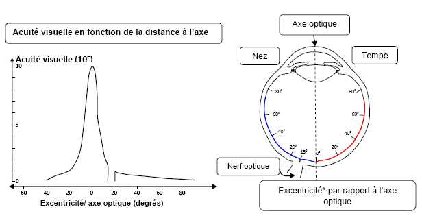 *L’excentricité correspond à l’angle d’un point donné de la rétine par
