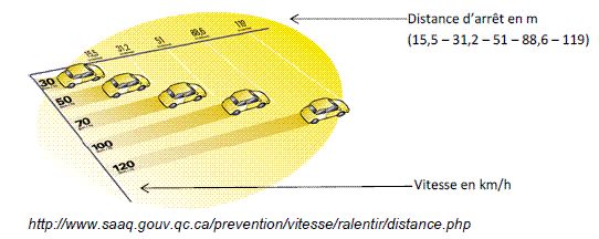 pour un véhicule roulant à 100 km/h, déterminer