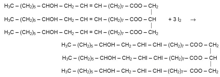 réaction entre le triricinoléate de glycérile et le diiode est écrite