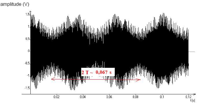 émis est analogique. Montrer que le signal modulant a une fréquence égale à 30 Hz. T ~0,067 / 2 ~0,0335 s ; f = 1/0,0335 ~30 Hz. Quel