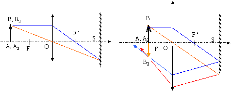 Un objet réel est disposé perpendiculairement à l'axe optique dans une