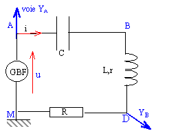 Dessiner un circuit RLC et donner les unités pour chacun des termes R, L et C. L : inductance en henry (H), R : résistance en ohm ( W) et C : capacité en farad (F).