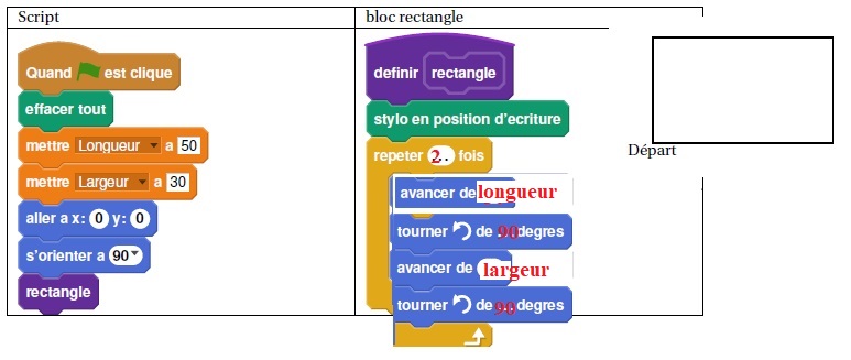 1. Compléter le bloc rectangle