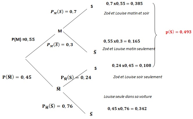 4. On sait que Louise a ramené Zoé le soir. Quelle est la probabilité qu'elle ait emmenée le matin ?