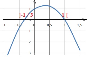 a) {−1/3 ; 1} ; B) ∅ ; c) ]−1/3 ; 1[ ; d) ]−∞;−1/3[∪]1;+∞[. Réponse c.