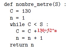 5. On admet que Sn = 26n2+104n. En déduire la valeur de n renvoyée par ce programme. 26n2+104n < 116 610.