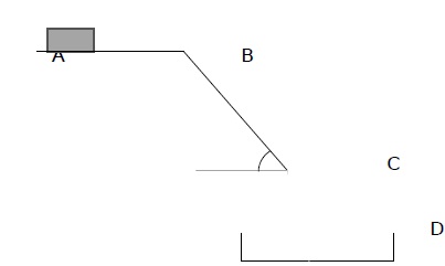 - Une portion de C à D où la boîte est en chute libre, dans un panier au point D.