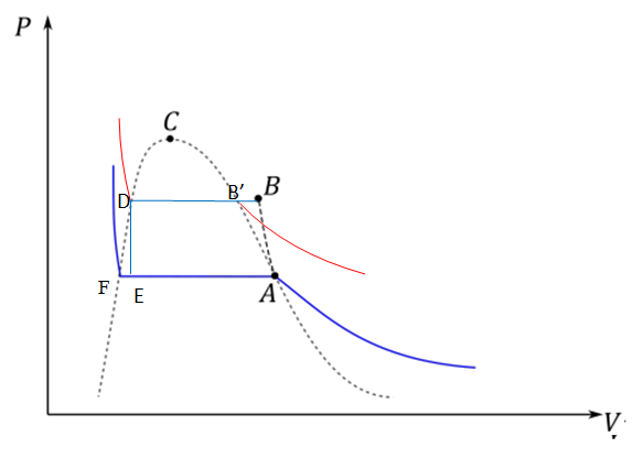 B → D est une condensation isobare : le gaz est refroidi de manière isobare jusqu'à l'état