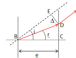 7. Un rayon lumineux atteint, sous un angle d’incidence i, l’un des dioptres d’une lame à faces parallèles en verre