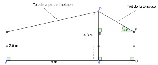toit de la partie habitable est un rectangle de longuer 12 m et de