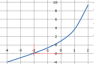-2 appartient à ]-oo ; +oo( et f(x) est strictement croissante sur cet intervalle.