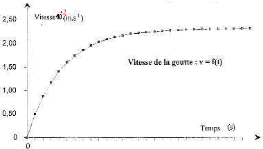 II- Frottements : en réalité la vitesse des gouutes à proximité du sol est constante et vaut vL= 2,3 10-2 m/s. Nous envisageons d'autres forces appliquée à la goutte, afin de se rapprocher des conditions réelles.