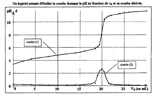 courbe 1 : pH=f(Vb) : courbe 2 : courbe dérivée