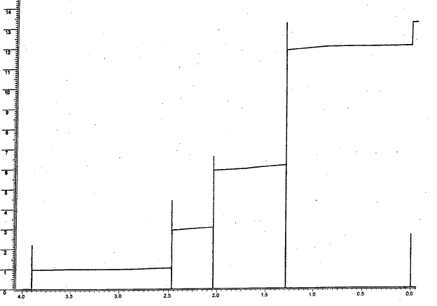 il n'y a que des singulets, donc les atomes de carbone les plus proches de l'hydrogène étudié, ne portent pas d'atomes d'hydrogène. singulet à 1,3 ppm , correspondant à 6 protons ( 2 groupes CH3 un peu déblindé par exemple par >C-OH) singulet à 1,9 ppm , correspondant à 3 protons ( 1groupe CH3 assez déblindé par exemple CO CH3) singulet à 2,5 ppm , correspondant à 2 protons ( 1 groupe CH2 un peu déblindé par exemple CO CH2 ) singulet à 3,9 ppm , correspondant à 1proton ( 1 groupe alcool O-H ) L'échantillon à analyser est mis en solution dans un solvant deutéré ; le solvant CDCl3 est invisible en RMN du proton ( le rapport gyromagnétique g du Deutérium est très différent de celui de l'Hydrogène). Le signal apparaissant à 3,9 ppm disparaît par addition de D2O et agitation : l'hydrogène du groupe alcool est remplacé par un atome de deutérium, isotope de l'hydrogène. C6H12O2
