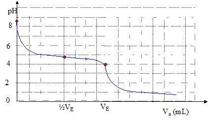 On envisage d'utiliser un indicateur coloré pour le dosage d'une solution d'acétate de sodium de volume V0= 200 mL et de concentration cb=1,00 10-2 mol/L par une solution d'acide chlorhydrique de concentration ca = 1,60 10-1 mol/L.