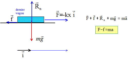 Déterminer l'alongement x de ce ressort au cours de la phase de démarrage étudiée précédemment. Système : le dernier wagon ; référentiel terrestre supposé galiléen.