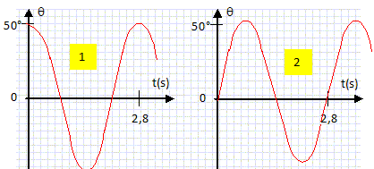 (1) : à t = 0, l'angle q vaut 50° et il n'y a pas d'amortissement. (2) : à t = 0, l'angle q vaut 0° ( ne convient pas).