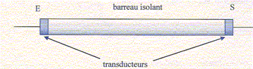 A- Le retard introduit par la LAR est de 300 ns. Vrai. 3 divisions correspondent à 0,3 µs soit 300 ns. B- La longueur L de chaque bobine est de 3 cm.Vrai. Pour L= 1 cm, le retard est de 100 ns ; pour L= 3 cm, le retard est de 300 ns. On peut réaliser une LAR à l'aide d'un barreau isolant muni de deux transducteurs. Le premier, placé à l'extrémité E, convertit le signal électrique en onde ultrasonore de période T = 300 ns. Le second, placé à l'extrémité S, retransforme l'onde qui s'est propagée dans le barreau en signal électrique.
