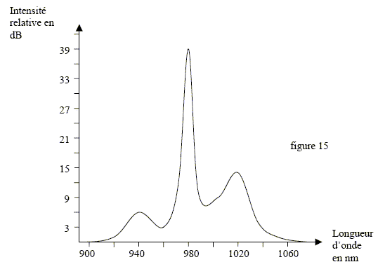 On donne le spectre de la lumière rétrodiffusée par la fibre optique :