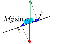 f = mg sin a = 2500*9,8 sin15 = 6341 N. le bloc est soumis à l'action des rouleaux, perpendiculaire au plan, au poids et à la force musculaire F.