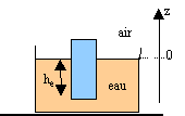 La poussée d'archimède est la résultante des forces de pression ; son module est égal au poids apparent du volume d'eau déplacé. Pa = rev (g - g ). La poussée due à l'air est négligée. L'équilibre du cylindre de volume total V, dans le repère de l'ascenceur s'écrit : ve est le volume du cylindre immergé.