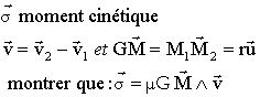 Ec = ½m1v1² +½m2v2² remplacer les vitesses par leurs expressions en fonction de v: Ec = ½ m1(m2/(m1+m2))²v² + ½ m2(m1/(m1+m2))²v² = ½ mv². en coordonnées polaire l'énergie cinétique s'écrit : Ec= ½ m[r'² + r² q'²] faire apparaître C = r²q' Ec= ½ m[r'² + C²/r² ] l'énergie mécanique est la somme de l'énergie cinétique et potentielle E = ½