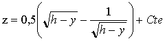 Comment déterminer la constante ? à l'instant t=0, le missile est au sol (y=0) et il est vertical ( x'=z =0) Cte = -0,5( h0,5 -h-0,5 ) ; cette constante sera notée C1. On choisi h comme unité de longueur; alors C1 est nulle. Comment passer de z = x' à x ? On pose Y=h-y La primitive de (Y)½ est : 2/3 (Y)1,5+ cte La primitive de (Y)-0,5 est : 2 (Y)0,5+Cte. d'où la trajectoire du missile : x = 1/3 (Y)1,5 + (Y)0,5 + C2. Comment déterminer C2? à t=0, le missile est en O (0 ; 0) et Y=h C2= -1/3 h1,5 + h 0,5. h étant l'unité de longueur, C2= 2/3. instant de l'impact: Le missile rencontre l'avion lorsque Y = 0. d'une part : ximpact = C2=2/3 d'autre part : ximpact = v timpact timpact = 2 /(3 v ) , h étant l'unité de longueur timpact = 2h /(3v)