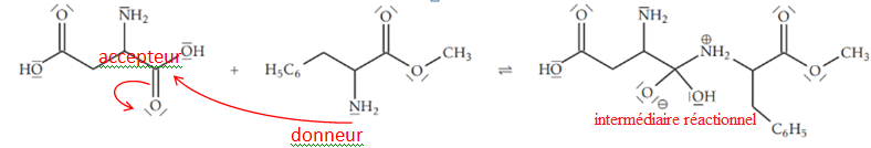On souhaite créer une liaison entre l’acide aspartique et la phénylalanine méthylée pour