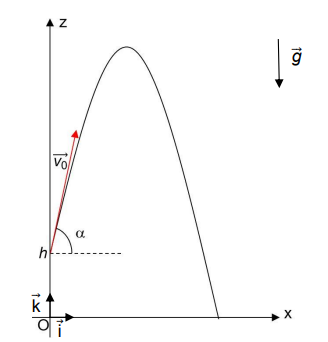 Le joueur tape le ballon et lui communique une vitesse initiale v