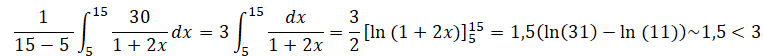 Est-il vrai que la valeur moyenne de f sur l’intervalle [5 ; 15] est supérieure à 3 ? Justifier la réponse.