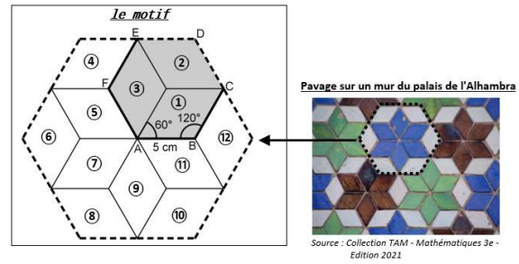 On s'intéresse au motif dessiné ci-dessous que l'on retrouve dans un pavage recouvrant un mur du palais