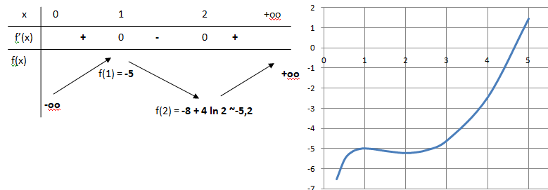 +4 ln(2½) ~ -5,1 est un point d'inflexion.