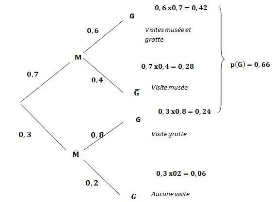 1. a. Vérifier que P non M ( non G) =0,2, probabilité que le client interrogé ne visite pas la grotte sachant