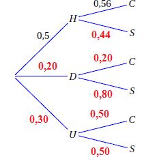 Compléter l’arbre pondéré de probabilités fourni qui décrit la