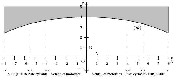 l’aire de la façade exprimée en m2 vaut 5(e1,6 −e−1,6).