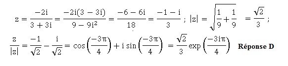 La forme exponentielle du nombre complexe −2i /(3+3i) est :