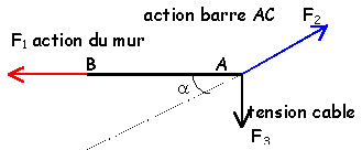 potence actions mécaniques sur la barre AB ? |